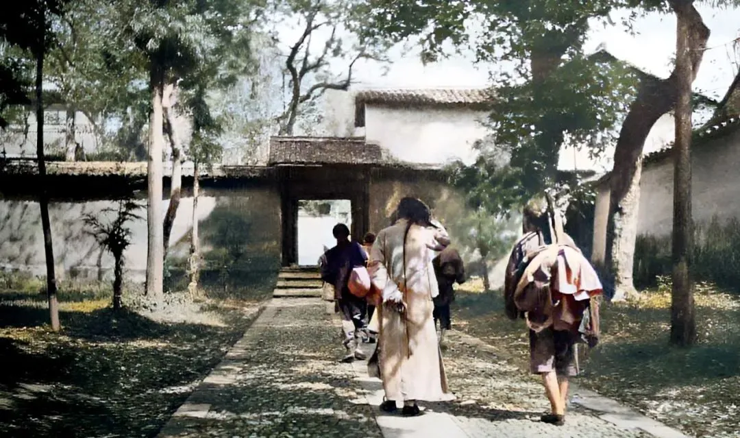 这条石子路上的叫赶考队,前头人扛着被卷,后头小童背着书箱,树荫子一片片洒下来,脚步不快也不慢,心里打鼓的声音,隔着百年也能听见。