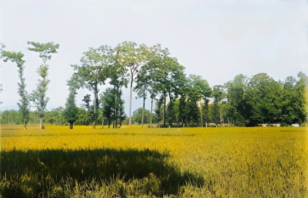 这片金灿灿的就是稻田,田埂细细长长,树一行行直上天,风一吹稻浪翻身,像有人悄悄梳头,外婆说那会儿秋忙,晚上还得点马灯打场,现在机器一轰,半天收完。