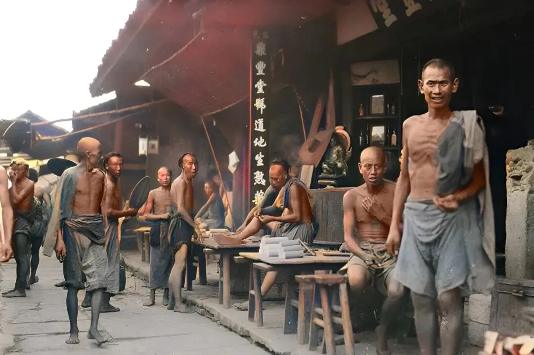 这一群赤膊的叫脚夫,肩头搭着汗巾,脚面裹着粗布,药铺门口的木牌写着地道生熟,伙计把银元码得整整齐齐,掌柜抬眼一看点点头,爷爷说以前扛一百多斤爬坡不带喘,现在电梯直达,力气慢慢没人比了。