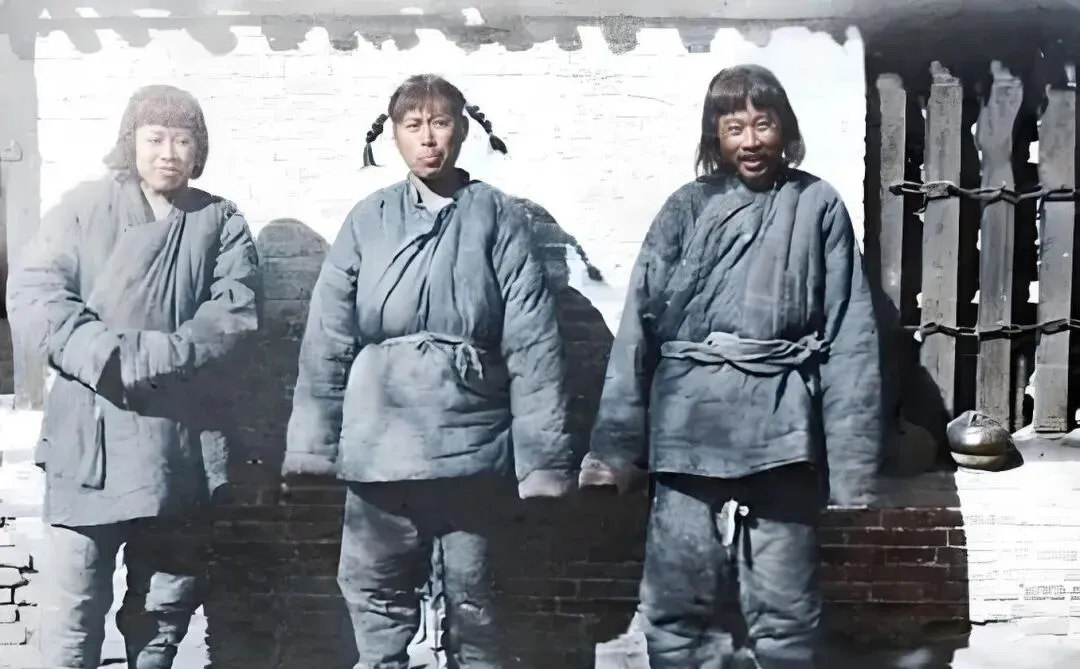 这三位妇人的衣裳厚重,腰间系带把袄裹紧,左边那位脚掌短得厉害,这是裹出来的三寸,走起路来脚尖先点地,再把身子小心地移过去,奶奶说她娘年轻时也被逼着缠过,冬天脚背冻得紫亮,鞋子得找专门的匠人做,布面窄窄的,针脚密得像蚊子点儿,现在想起就摇头,幸好这一遭总算过去了。