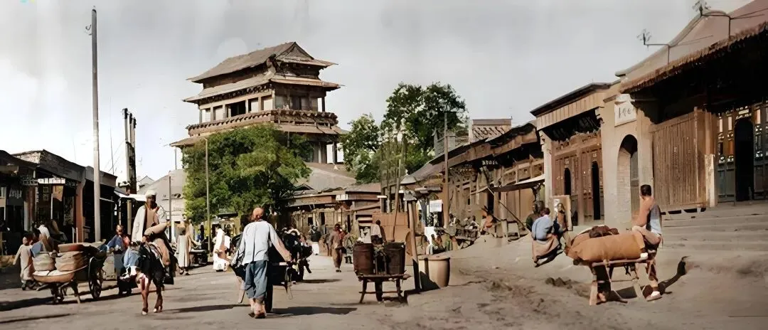 这条街从城门下穿过去,路面是碎土夯出的,推独轮车的汉子弓着背,牛车慢吞吞,赶路人的草鞋把尘土搅得松松软软,一旁铺子门口搭着木棚,挂着铜壶木桶,孩子们坐在台阶上晃腿看热闹,后来门楼被拆,路拓宽了,热闹味倒淡了不少,城市越长越高,人和人的距离反而被拉远了。