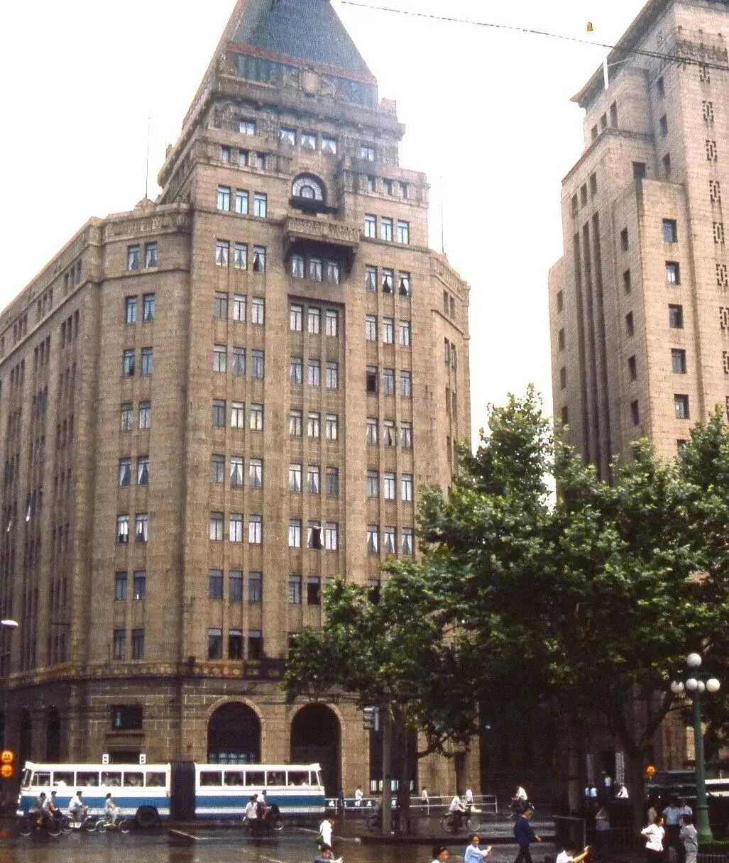 这栋灰黄色的老楼是外滩风格的办公楼,窗子密密匝匝,石材边角有花纹,楼下呼啦开过一辆白蓝相间的铰接公交,车厢中间像手风琴,雨过地面发亮,小时候我贴着车窗看路牌,怕坐过站,售票员手里一串硬币叮当响。