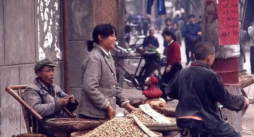 这张里颜色不多,黑白灰占大半,却有股子暖意,陌生人也会帮你抬一下袋子,老人问路总有人停下来,那个年代物质不丰盛,人情却不贫瘠,这句话放到今天依旧顺耳。