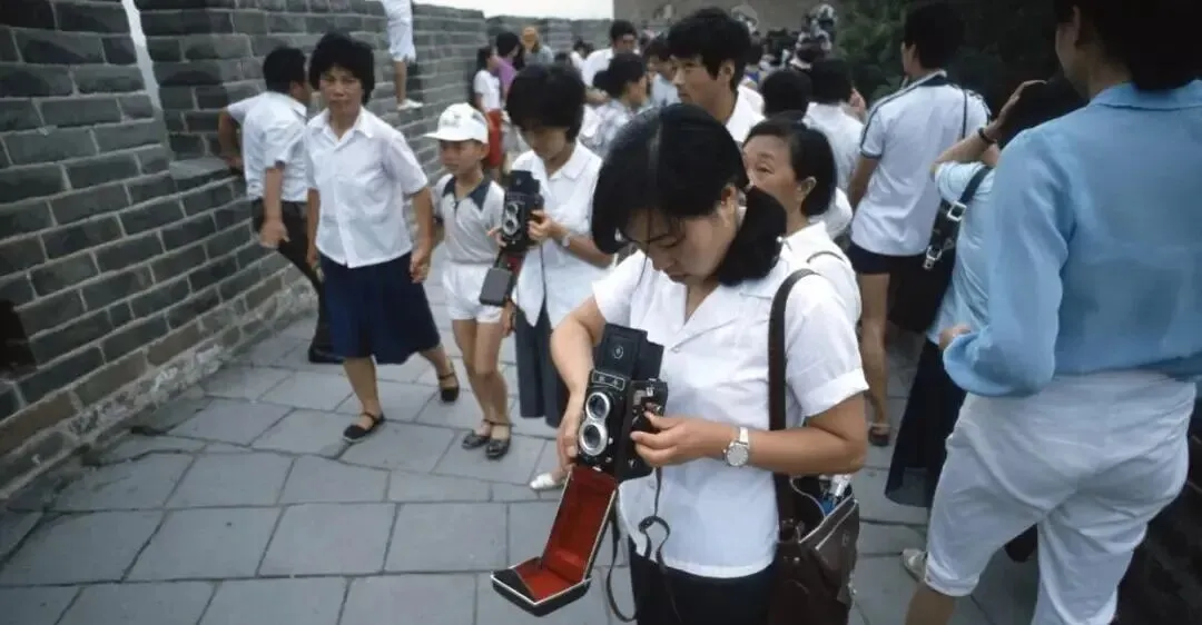 这个方方的机器叫双反相机,抬开上盖从腰平取景,红绒相机包一翻,里面卡位严丝合缝,按快门时要憋气,怕手抖糊了人,爸爸第一次带我上城墙,嘱咐别眨眼,冲洗出来一张泛青的合影,现在手机连拍一百张,挑来挑去反倒不知道留哪张。