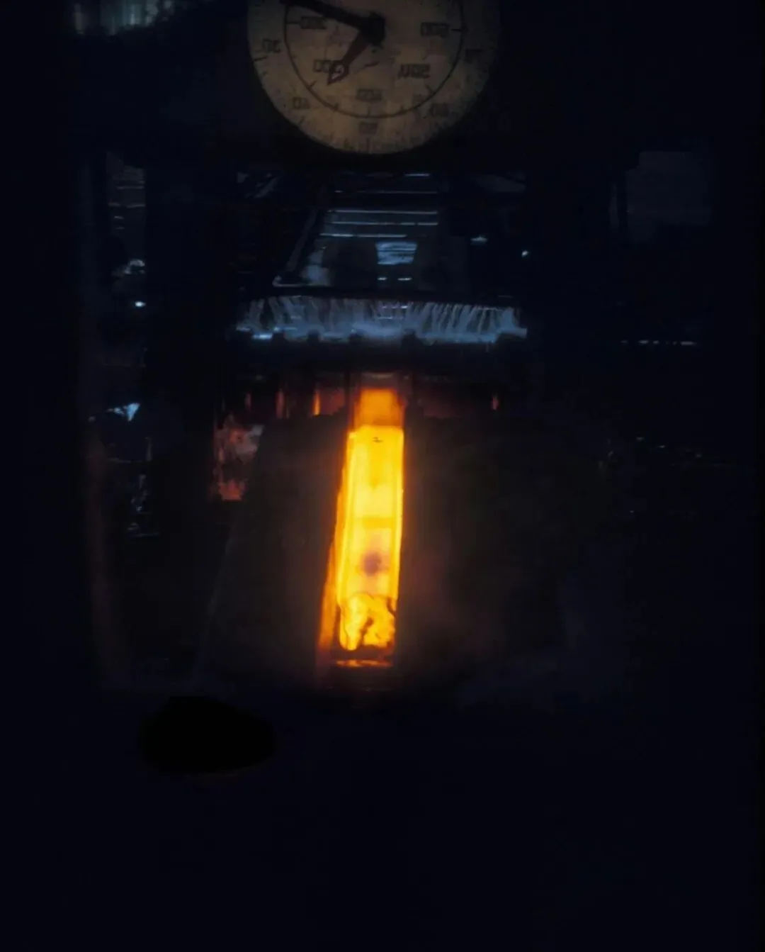 这个长条叫初轧钢坯,上面冒着细细的烟,表皮沙眼一层层冒泡,压力表在上面盯着数字走,指针抖一抖,人心也跟着抖一抖。