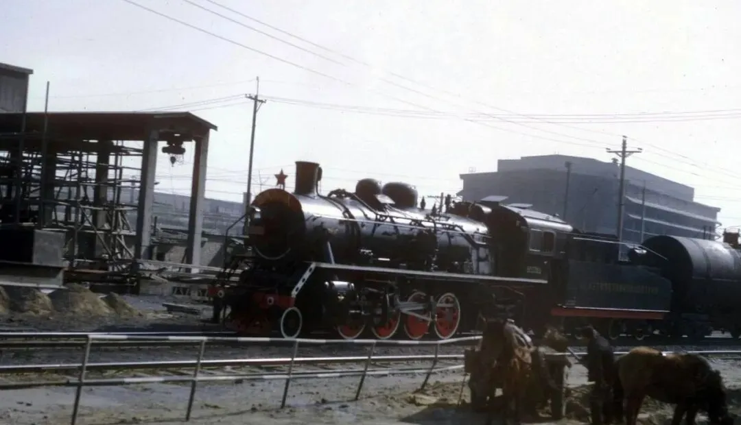 这台小火车叫内燃机车,黑壳子红轮缘,头上顶着一颗红星,前面连着铁水罐,师傅一手扶着踏板,一手挥挥,小马车在边上装沙子,老北京的味道就这么撞在一起了。