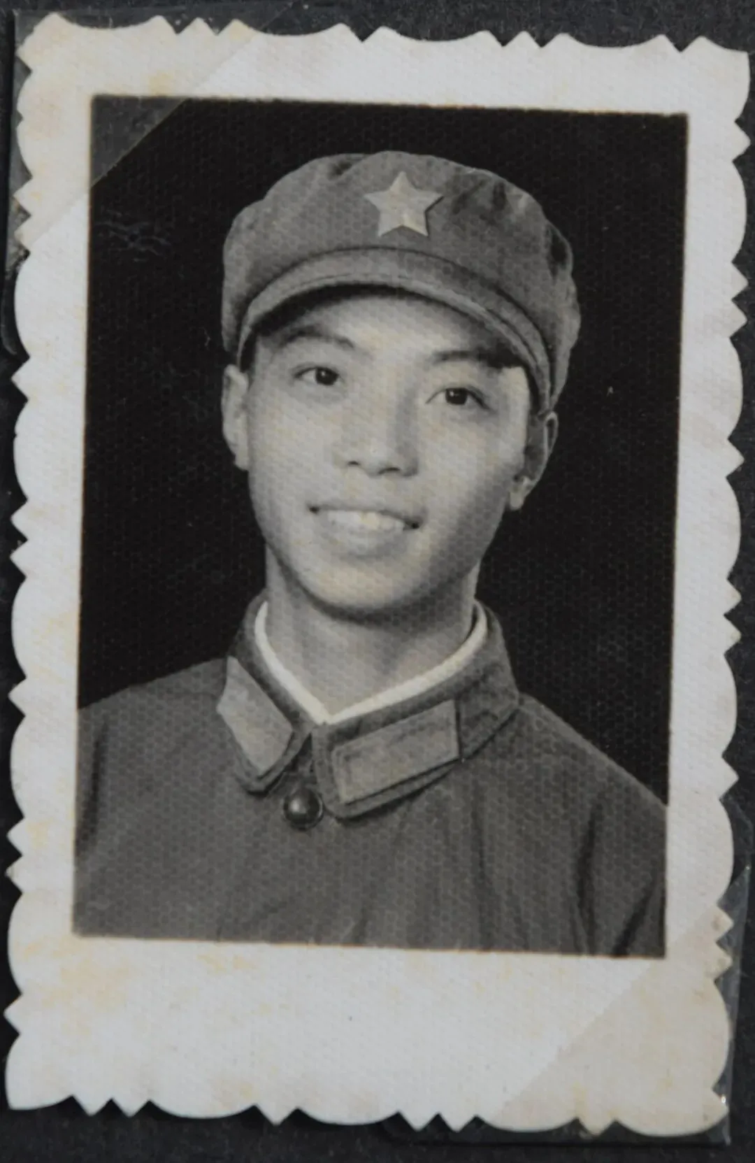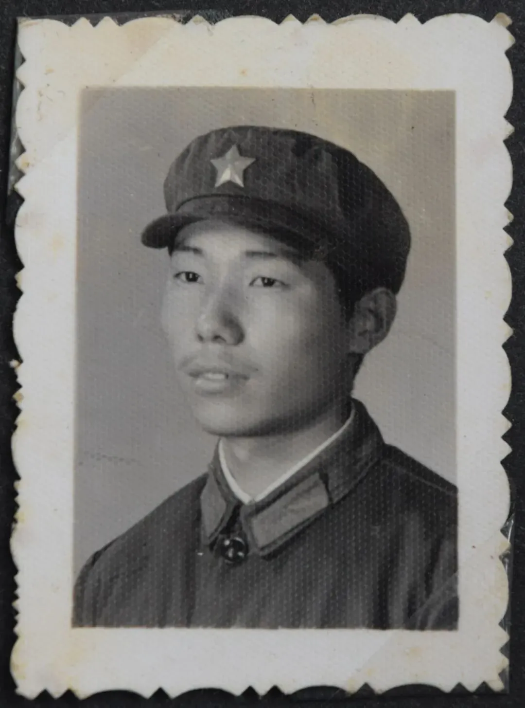 看着这一寸的黑白照片,表面陈旧斑驳,岁月留下了重重的痕迹,照片中是一位穿着军装、戴着军帽、佩戴领章帽徽的解放军战士,年轻英俊的形象,坚毅闪亮的眼神,透出那个时代无所畏惧、不怕困难、奉献青春的时代精神。触目如故,比对着镜子中看到的自己,怀疑着、那是我吗?是的!那就是我。