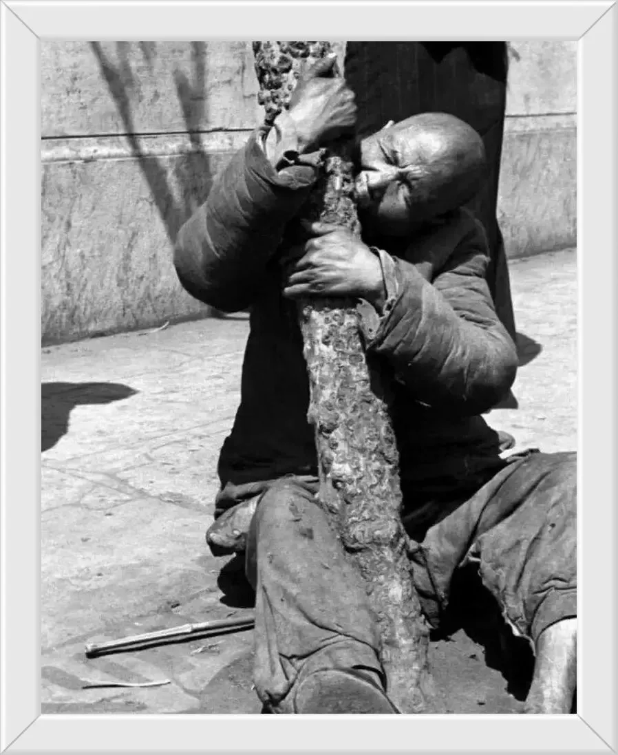 一遇上灾荒年,那才叫真的绝望。地里绝收,粮食一粒没有,能吃的树叶、草根全被抢光,实在饿极了,有人就把泥巴混点谷壳做成饼吃,哪还会管什么不消化,不吃就得饿死,只能硬往肚子里塞。这张是河南62年闹饥荒的时候。