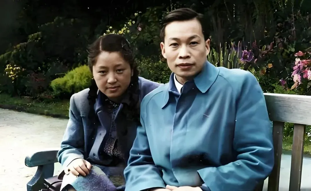 图中这对并肩坐在长椅上的就是一对学界伉俪,男士的呢大衣是清爽的湖蓝色,翻领利落,袖口压得平平整整,目光沉着里带点少年气,女士披一件素灰外套,辫子压着领子,神情安定,身子微微前倾像是在听他把话说完,后面花圃里颜色开得正好,紫的红的密密点着,他们身上的蓝调被花影托得更亮,若是放在黑白里只觉端正,上色之后才看出那份不声张的亲密,像说好了的默契,一个稳住世界,一个点亮日常。