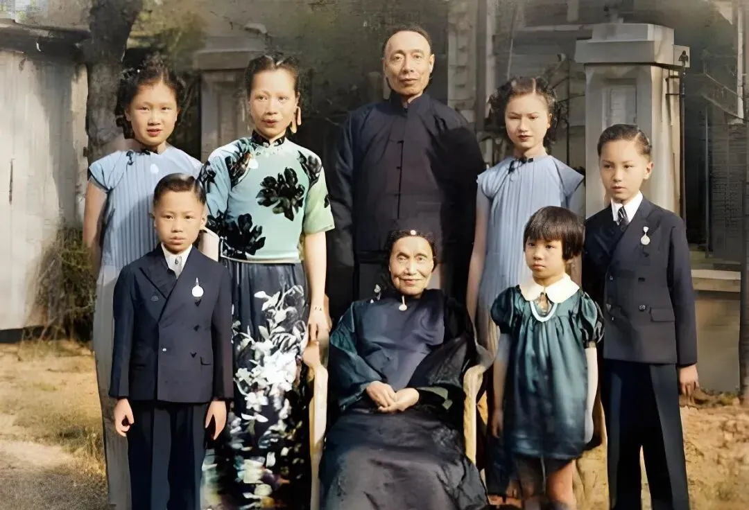 一组近代名人上色老照片:钱三强夫妇;冰心一家人;曾国藩小女儿全家福;张幼仪和她的孙子孙女们。