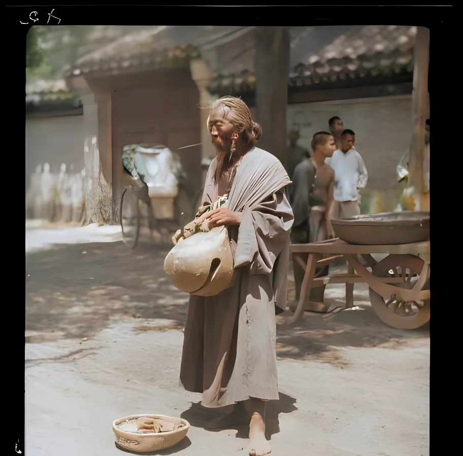 民国上色老照片:传统弹棉花作坊;保定马车穿梭于街;穿颊苦行僧。