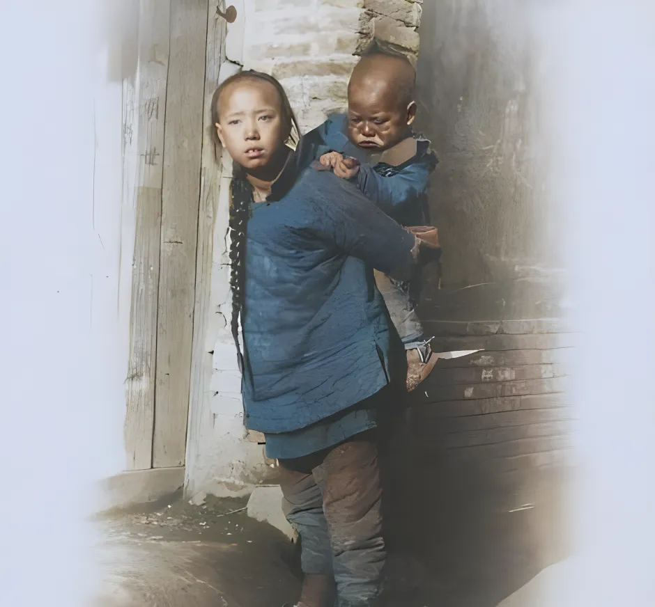 这个瘦瘦的少年背着更小的孩子,辫梢垂在肩后,衣裳发白,膝盖处起了硬壳,脚上布鞋的鞋帮裂着口,露出里面麻绳打的衬底,姥姥说,家里穷时大孩子就是顶梁柱,水缸空了他得挑,弟弟哭了他也得背着哄,我记得小时候放学回家,书包里塞一把烤白薯,热气一路往上冒,等开门递给妹妹,手心都烫红了。