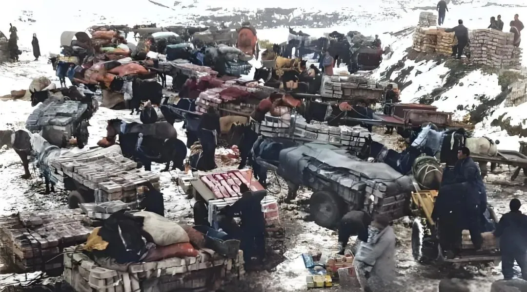 图里这串拉长的影子叫独轮车队,北方人都认它,木把手被手心磨得发亮,车肚子里码的是箱装弹药、干粮和棉被,前边一个扶把,旁边两个搭肩,后头还拴着一根救命的拉绳,坡陡了往后一勒,车就不至于顺坡跑,冬天路滑,雪泥咯吱响,车轮碾出一道硬硬的黑线,陈毅那句“独轮车推出来的胜利”,听着不虚。