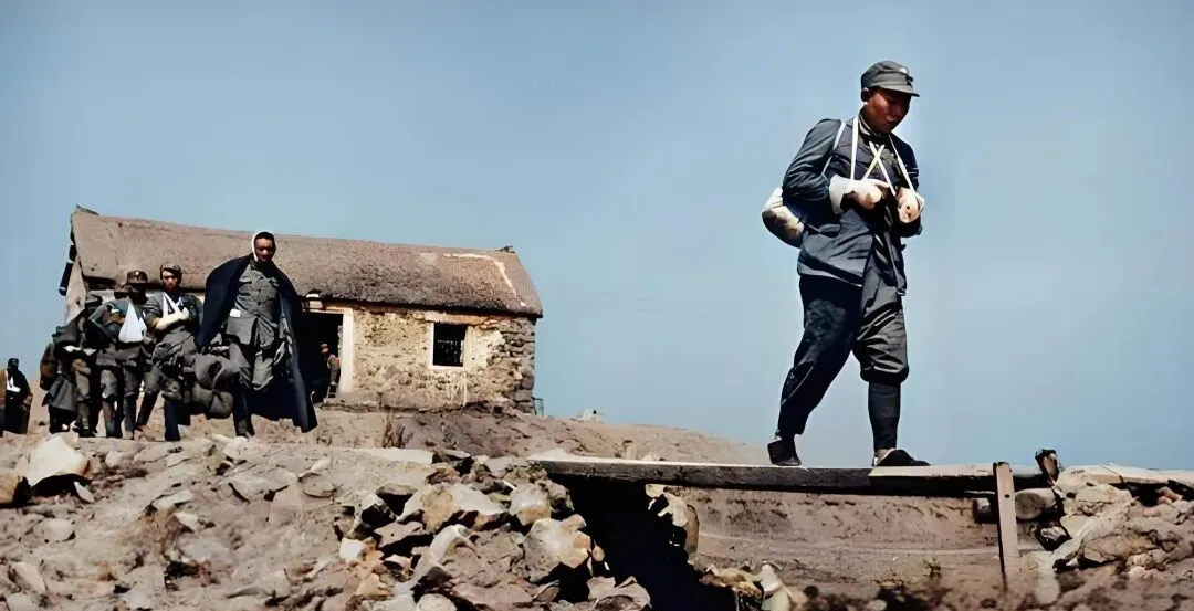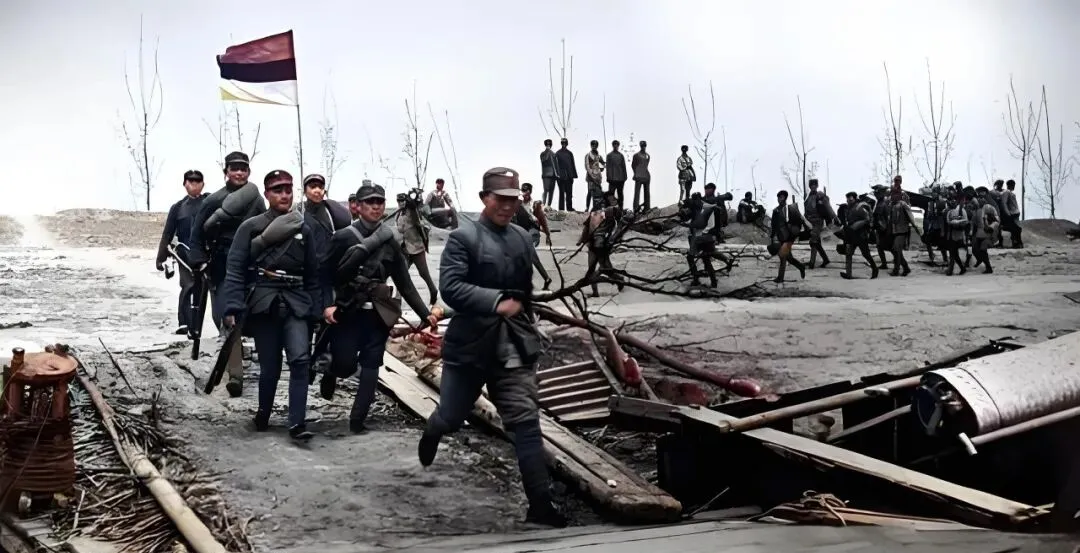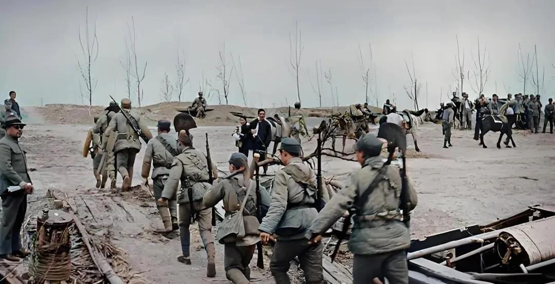这张上色最见巧,士兵的军衣灰里透蓝,脸颊被风刮得发红,远处一排杨树没叶,枝杈像叉子插进天,颜色一上,冷劲儿更足了,老照片原本灰蒙蒙的,现在看着鲜亮些,却没失真,这才是能把记忆点亮的修复。