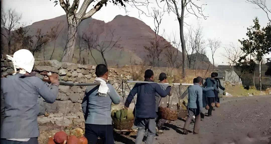 这一担子看着是蔬菜瓜果,其实底下垫着旧棉絮,软绵绵的,震不碎易响的零件,民兵挑着过村口,跟老乡打个照面,嘴里还叼着草根装糊涂,等人背影走远才把担子往沟下一放,手背在裤腿上抹一把汗,路继续赶。