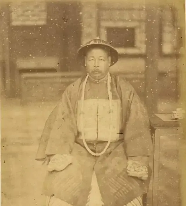 这个坐在杌子上的人像最打眼,圆顶帽后挑着花翎,身上是宽袍,案上压着文书,边上还摆了盏器物,神情有点倦,像是刚批完条陈,奶奶以前讲左公入陕甘,**“缓进急战”**四个字不离口,说干仗要心稳手快,现在看这张像,倒是多了些暮气与烟火气。