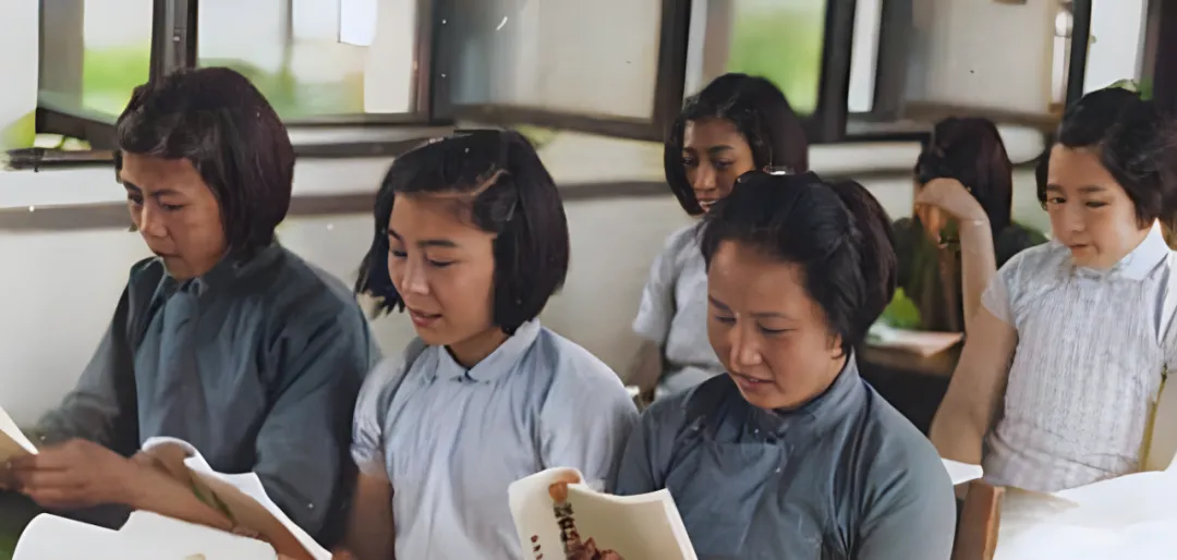 这张几人同排的就是女校课堂,木窗半开,光从斜上打下来,课本翻到中段,封皮边角有毛刺,老师不拍黑板,只让大家跟读,声浪起落像潮,坐中间那位手指捏着页角,读到难字轻轻顿一下,又往前赶,妈妈说,那时不流行空喊口号,考试照样严,学的东西从家政到算术都有,谁学会抄账,回家就能管铺子,谁学会英文,报馆就敢收她当小助理,路越分越多,脚下就不止一条。。