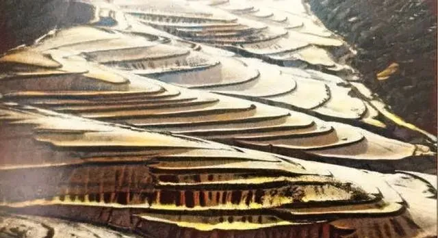 图中这一道一道的弧叫黄土梯田,泥黄里透着一点灰,边沿被雨水磨得圆润,像被掌心反复抚过,干活的人从脊背把锄头挑下来,脚下一踩就有土响,爷爷说,挖坡填沟垒塄搭台,四件事才叫成活,春天把水引上去,顺着弯儿慢慢走,麦苗像被梳子梳过一样齐,那个年代地薄人多,靠的是一层一层攒出来的耐心,现在有无人机打药,水肥一配手机就能算清,可土腥气淡了不少。