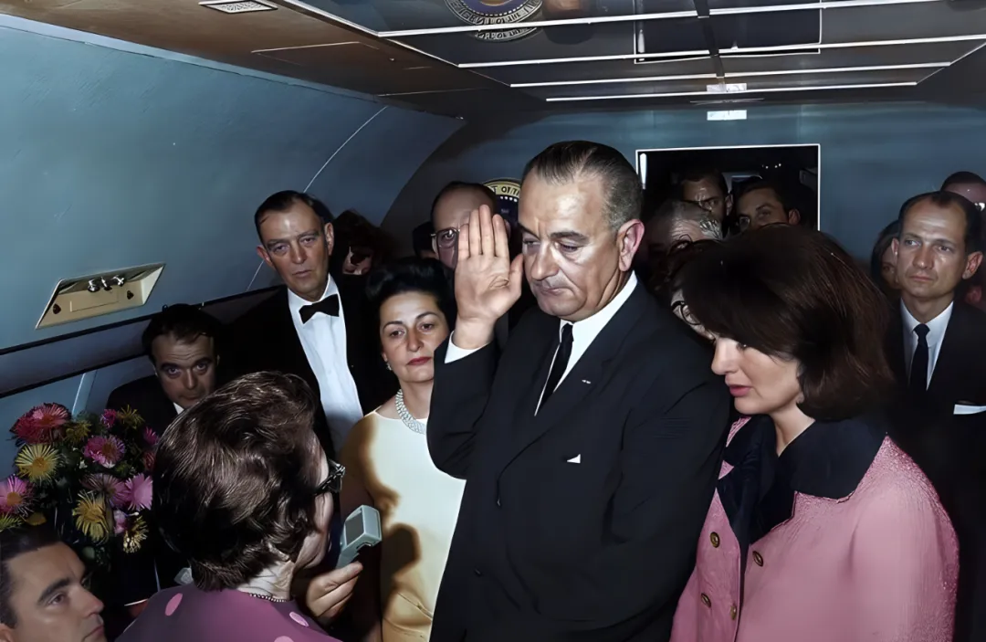 这个场景叫临时就职宣誓,窄舱里站满了人,顶上的储物格把空间压低,花束挤在角落,仪表灯把每张脸都照得清楚,举手的人眼神发沉,旁边有人低着头握着手包,空气很紧,像拉到最末一格的安全带。