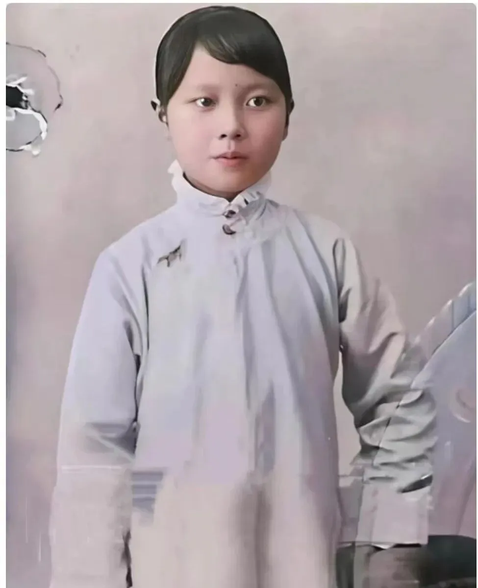 这个小小的半身照,图中女孩穿着素色长衫叫长袄,领口立起三粒盘扣,袖口宽松,胳膊自然垂着,脸上还带点婴儿肥,眼神亮亮的,很干净,一旁的背景有块破损的墙皮,反倒衬出那会儿照相馆的家当简单,却把人拍得端正利落,奶奶看见这种立领就嘀咕,说那时候拍照得憋着不眨眼,照相先生喊一声好,才敢呼气。
