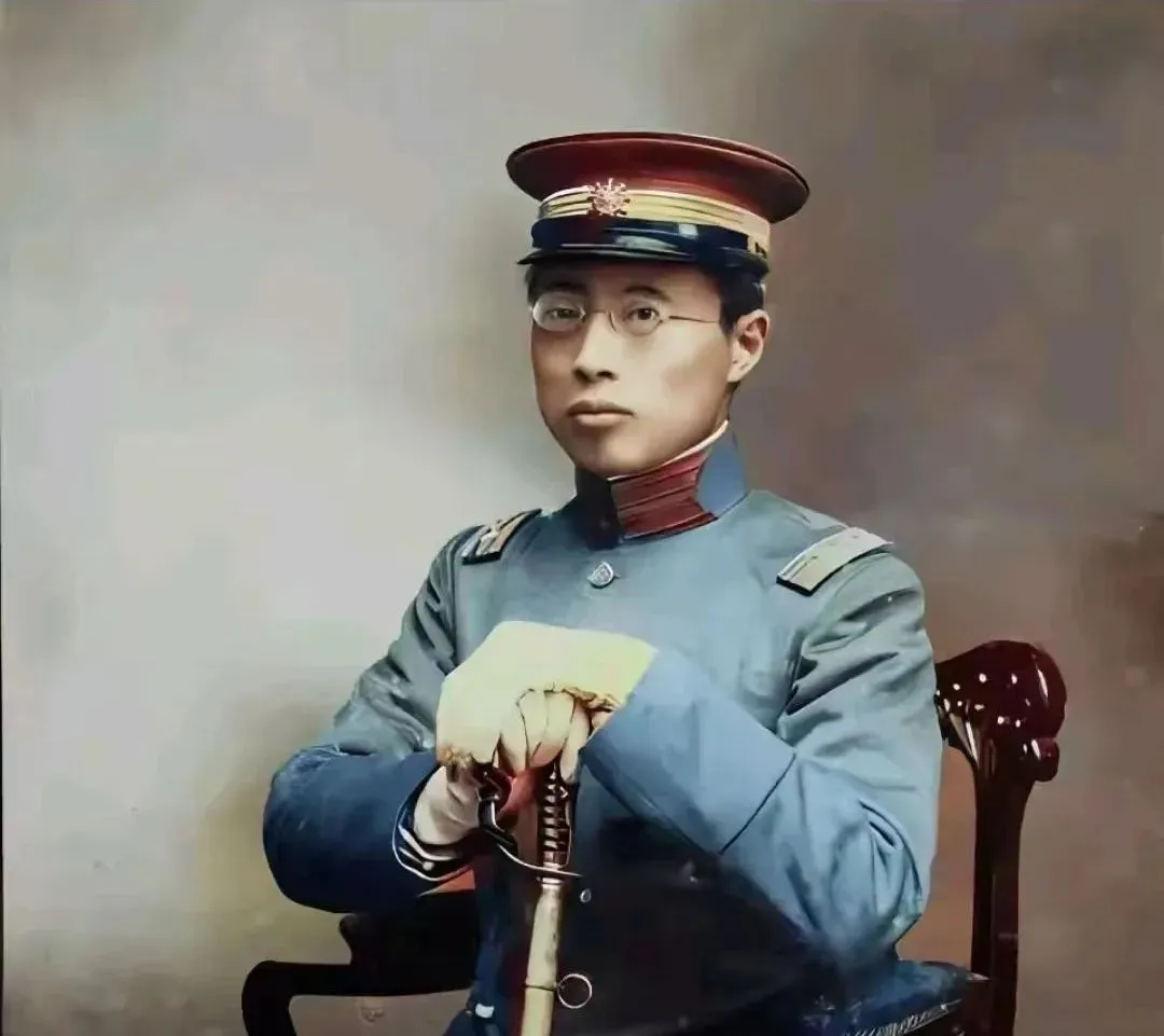 这个人坐在雕花木椅上,双手叠着握住佩剑,军帽红檐黑沿,正中一朵金色徽章,手上戴着浅色手套,镜片后面眼神稳稳的,制服肩章有棱有角,纽扣光可鉴人,整张照片给人的感觉就是两个字,板正,以前拍这种像要先把头发抹齐,衣襟拉平,连眼镜都得擦三回,现在随手一拍就能出片,可那股子认真劲儿真是少见了。