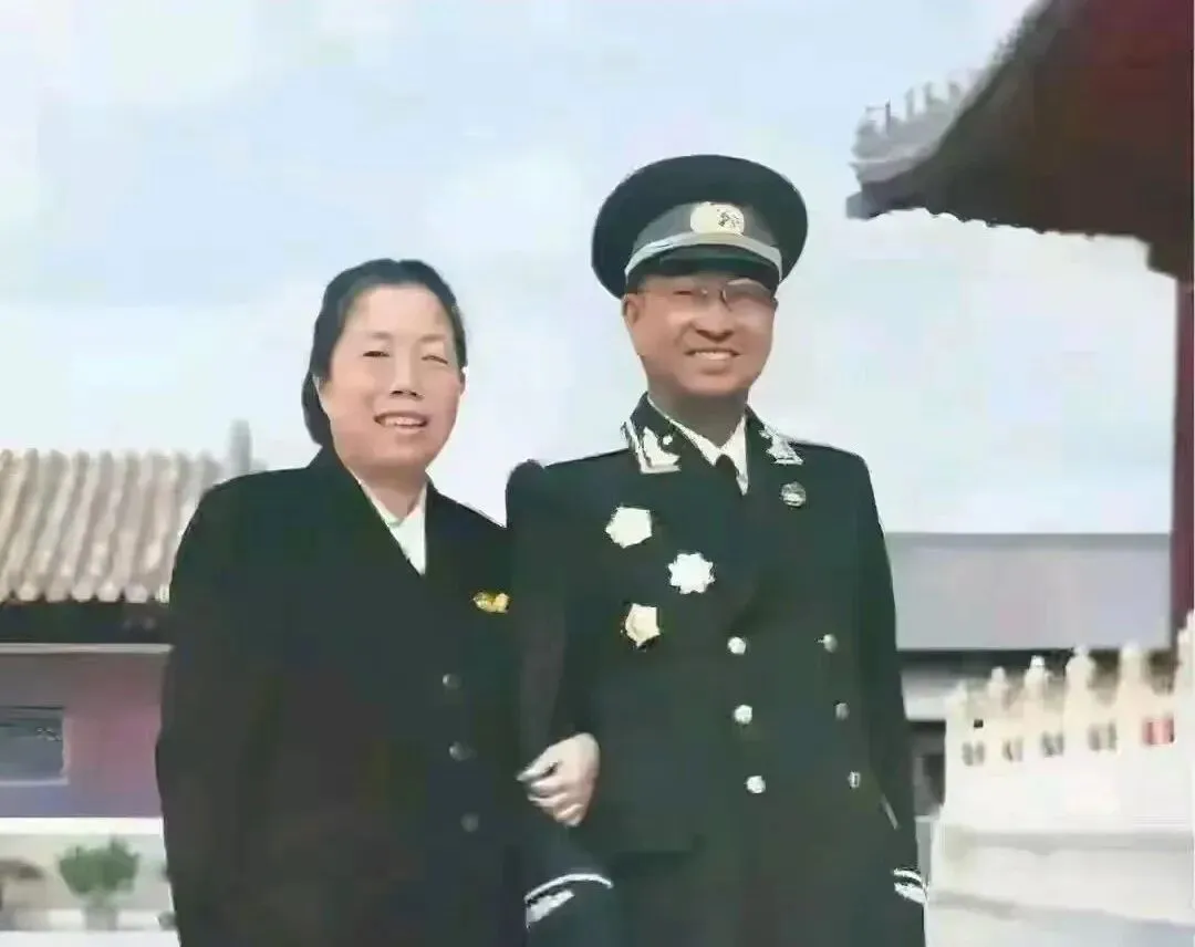 这对伉俪挽着胳膊站在宫墙前,帽檐正,肩章亮,笑得很放松,身侧的桌上摆着一排白瓷瓶,看不清标签,但排列得齐齐整整,像是刚参加完典礼出来透气,风一吹,衣摆鼓起来一点点,照片颜色淡淡的,很清透,那会儿流行把荣誉别在胸口,回到家里,母亲会摸一摸那枚章,说沉不沉,佩章沉,心里就踏实。
