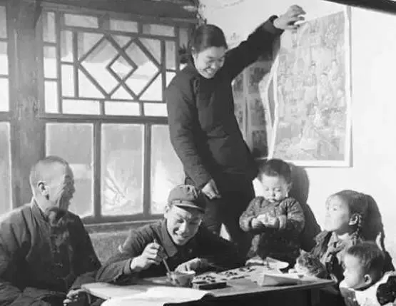 ▼ 1950年,北京过了新中国的第一个春节,那年毛主席年画非常受欢迎。▼ 有点文化的人,就帮大家写春联,虽然不是什么书法家,但一笔一画地也毫不含糊!这样的春联,极受大家的热捧。▼ 除夕之夜,家人团圆,守岁围炉,温情四溢。下面是1953年春节,天津一家人吃团圆饭的场景。▼ 过年了,除了有好吃的,大人们还会给孩子们做做玩具,家里有点余钱的干脆直接给孩子们买点。简简单单的“大刀”、面具、小风车,不算很精致的娃娃,就足以让一群小孩玩得不亦乐乎。▼ 春节穿新衣,红旗商场到后来的百货大楼是最时尚的存在。以前,普通人家过年才会添新衣,所以每到新年,有新衣服穿,自然是开心极了!▼ 当然,过去的新衣服不止商场能买到,妈妈的巧手也会变出一件来。过年最让孩子开心的事就是能穿上新衣服,很多母亲为此不知熬了多少个日夜。▼ 三个穿着新衣服的儿童在放鞭炮,其中两个小女孩正害怕地捂着耳朵。▼1956年的春节,村民围坐在一起,第一次听到了收音机里传来的远方的祝福。我国第一台黑白电视机诞生在1958年,所以,在那之前收音机才是人们最爱的娱乐消遣之一。▼ 那个时候还没有电视、电脑,没有央视春晚,更没有网上直播,人们要看春节晚会只能去现场。以前,各市、郊、县文化宫每年都会举办春节联欢晚会,时间一到,人潮纷纷涌入会场,好不热闹!▼ 1956年春节,侯宝林、郭启儒,在春节联欢晚会上说相声。 ▼ 没有礼堂,天做顶,石头做椅,无论怎样的环境都阻挡不了中国人欢庆春节的热情。▼ 新年了,“总把新桃换旧符”、“学习先进经验”是那个年代挂的横幅。“能不回家就不回家”成了宣传口号,干部们纷纷下到工农家庭给大家伙儿拜年。下图就是一位老书记在去农家拜年时,帮忙张贴春联的场景。▼ 过年贴窗花自是不能少的,那时候窗花都是家里手巧的人剪的,小孩子喜欢的不得了。往被雾气染得白茫茫的窗户上,贴上红红的窗花儿,过年的气氛,别提有多浓!▼ 过年,当然要包饺子。老人包着饺子,孩子在旁边跑跑跳跳,好奇的还会上去学着捏上几个不成形的“怪饺子”,全家人乐呵呵地,满心期待着饺子下锅,这估计就是最有过年氛围的画面了。▼除了饺子,北方人还会做包子、馒头,待点心蒸好后,正中间再印个红花、红字,看着就喜庆!那是个属于集体的时代。