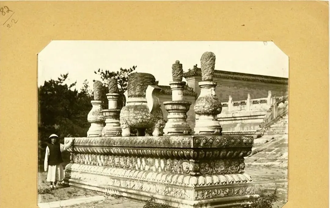 最后这一张,前是牌楼,后是配殿,台口一溜香瓶像士兵列队,远山压着屋脊,天色淡,照片边角有划痕,正好提醒我们,东西可以旧,记忆别糊,等哪天你也去清西陵,别只匆匆打卡,绕着石象慢走一圈,听风从松针里掠过去,就知道百年前的皇家气场,还在。