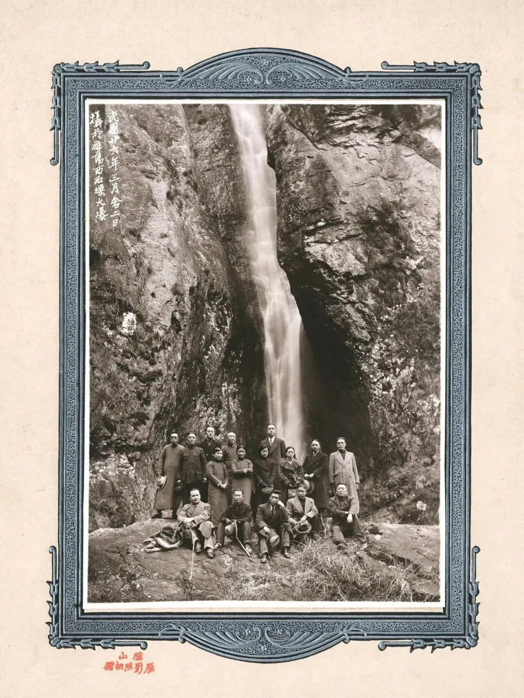 陈诚一行人在雁荡山西石梁大瀑前合影。选自第一六〇辑《1937 年:陈诚浙江行剪影》,作者冯杰、白中琪。