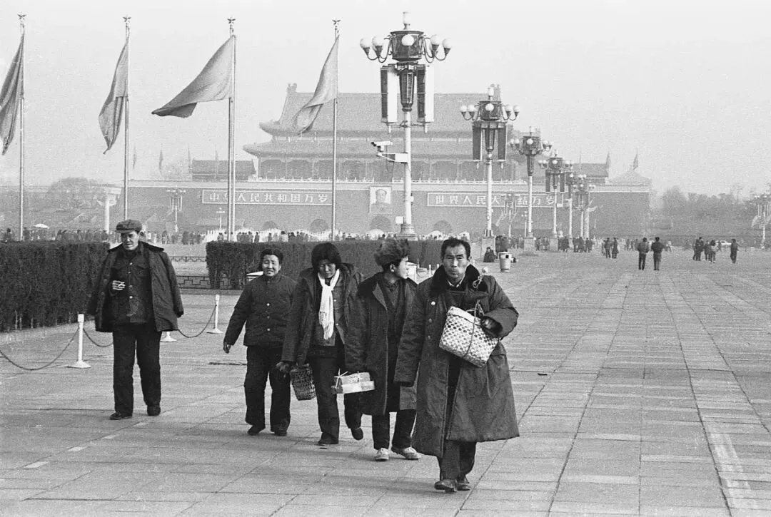 画面左边是父母,多半是男方父母。中间围着白围巾的是妻子,右边穿着军大衣的是丈夫。夫妻之间是他们的儿子。改革开放不光敞开了国门,融入了世界,还解放了广大农民,允许他们离开农村自由流动,允许他们进城打工自谋出路。这幅照片,记录了农民开始大胆走出农村、走向城市的复杂心态。