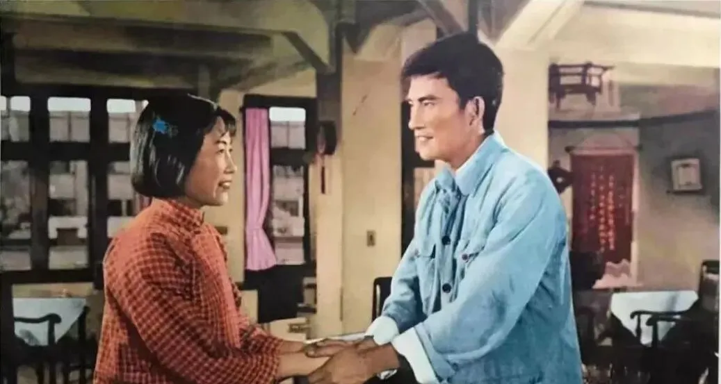 这张里俩人隔着一张桌,手心一碰,都是粗布衣裳,一个笑得腼腆,一个眼睛亮晶晶的,戏是生活里抠出来的,手背的茧子都没糊弄,镜头往前一推,观众就信了,妈妈当年追这类片子,说看完回家都想把窗帘洗了挂整齐,电影把人往好了引,这就是老片子的门道。
