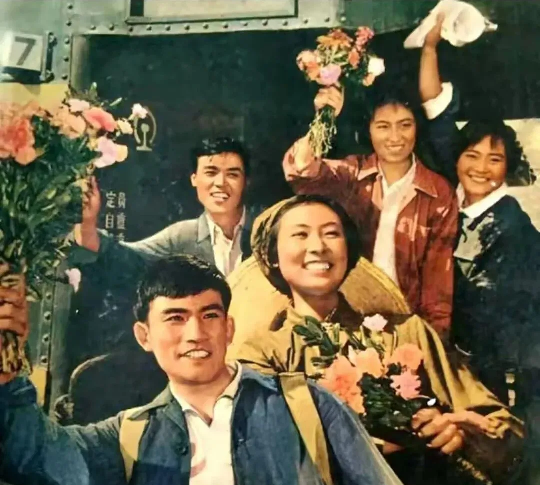 一束束康乃馨举起来,笑脸挤满画面,车门上的标识还在,铁皮一股冷光,开动前那阵子最热闹,亲友招手,火车汽笛一响,心里咯噔一下,年轻人背着包就上路了,以前离家是为了建设,现在出走多半是旅行打卡,时代不一样了,可挥手那刻的鼻酸是相通的。