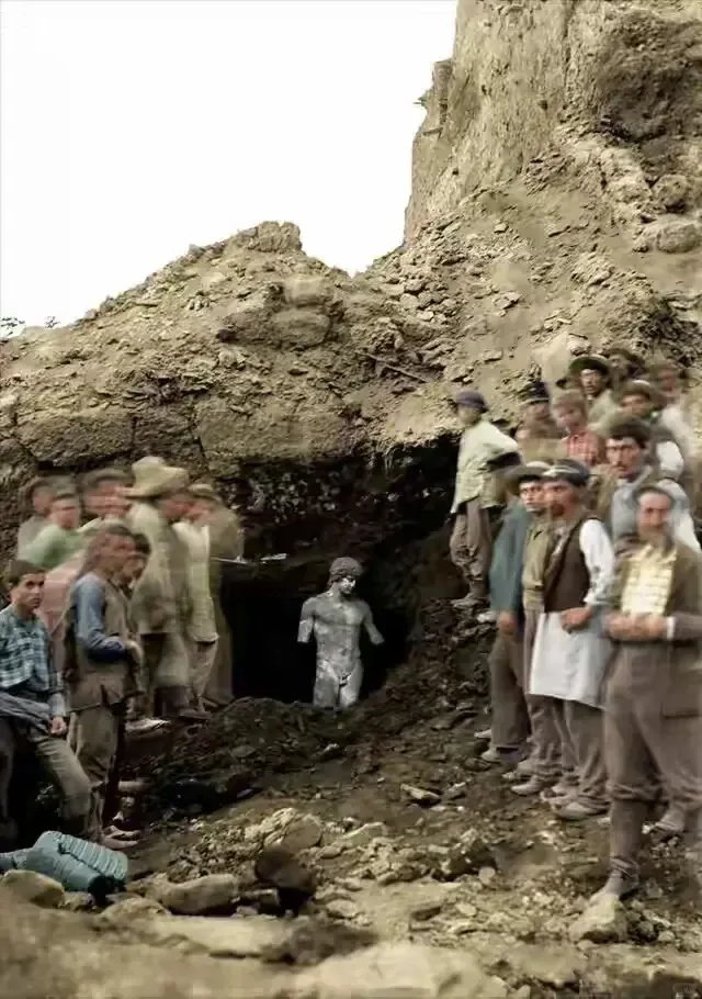 1894年,希腊德尔菲,安提诺乌斯雕像被发现当日。