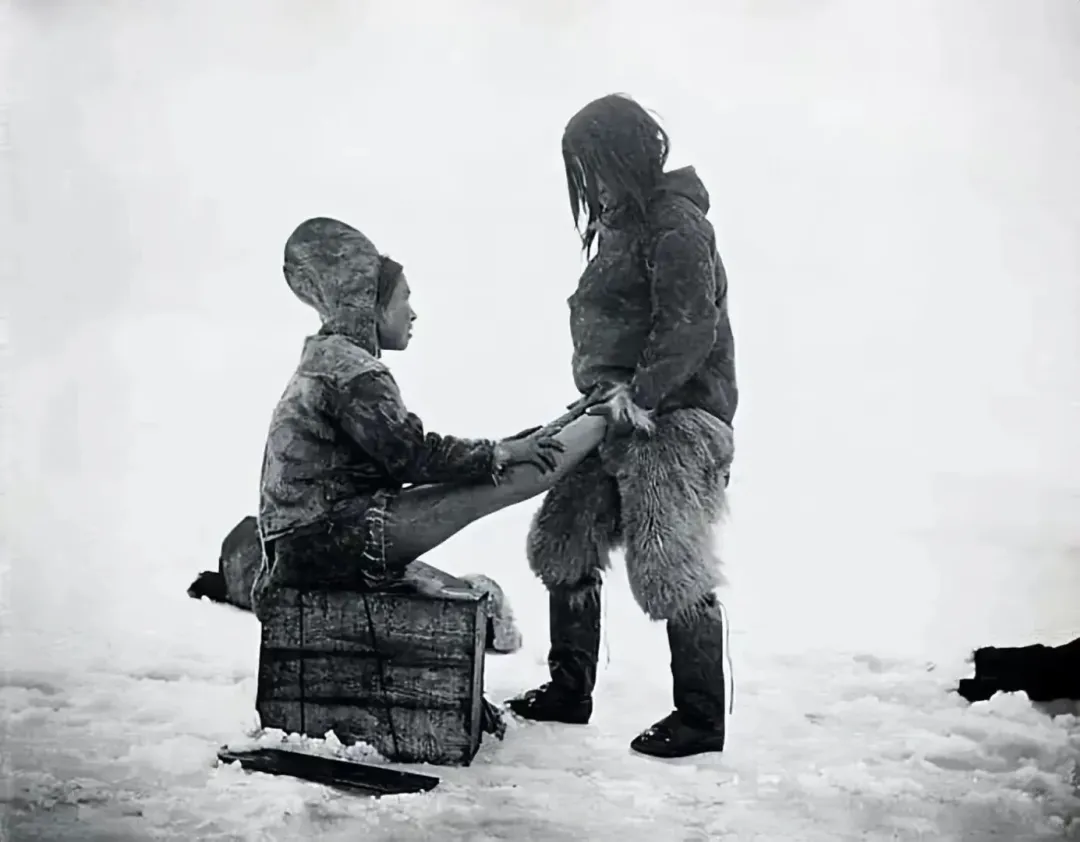 1890年,格陵兰岛,因纽特人正在给妻子暖脚。