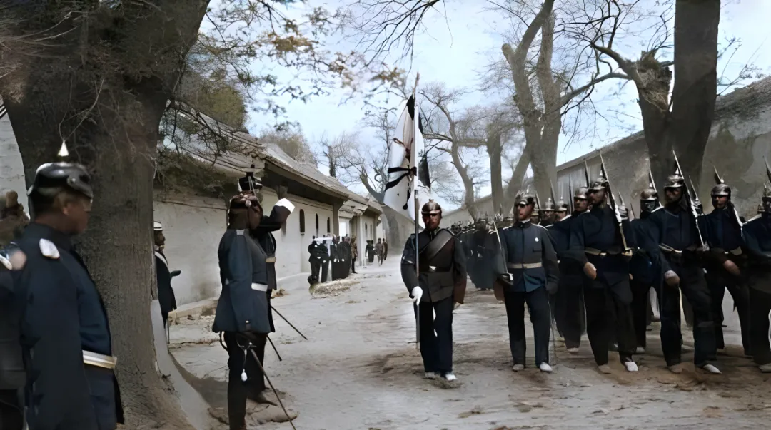 清末老照片从黑白到彩色:紫禁城外八国联军军营;裕庚和他的女儿;陕西的瓜农收西瓜。