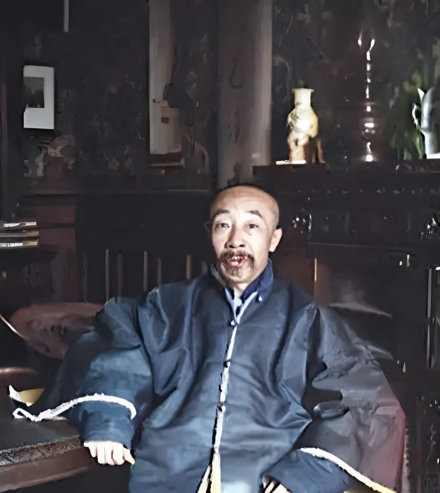 这个半倚在木靠背上的叫做坐照,衣襟是绸缎做的对襟袍,灯影压下来,眉眼被柔柔一糊,屋里的瓶子、条几都藏在暗处,只留他一张脸亮着,嘴角有点倔,像刚把一句话咽回去,我外公年轻时也留过这么一撇小胡子,端茶递烟时手很稳,说话慢条斯理,后来改穿中山装,口袋里永远揣着叠好的手绢。