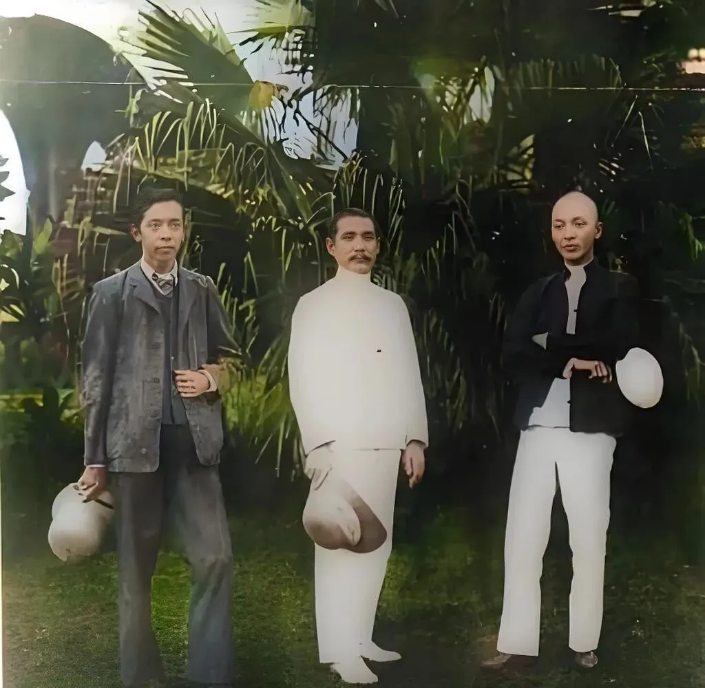 这张优雅得像热带雨后,棕榈叶子油亮亮的,人影一字排开手里都拎着礼帽,这个花园叫晚晴园,宁静的草地上站的却是风暴前的筹划者,他们在这里搭起分会,定人定事定方向,我小时候第一次在课本上看到这名字,只觉得好听,现在看这张彩色照,才明白好听背后是长夜里无数次的碰头与思量。