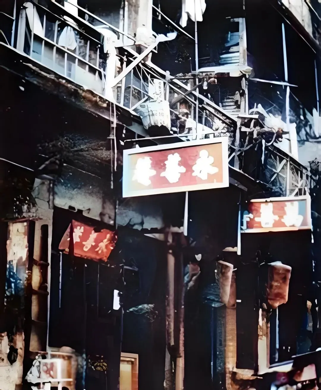 这个红底白字的木牌叫铺号招牌,边上铁栏杆缠着衣被和竹竿,巷子深处黑黢黢的,这就是机关设在市井里的样子,门脸不大,来往人多,很多决定都是在吵闹声里做出来的,旧城的气味混着烟火,实打实。