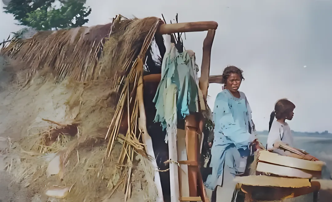 这处用芦草搭的简陋屋叫窝棚,门口斜倚着木杆,旁边摞着两口行脚箱,薄薄的板子边角都起刺了,母女俩站在门口等人影,风从草缝里漏进来,衣襟被拽得呼啦呼啦抖,爷爷说灾荒年景里人先找背风处,再想法子把夜熬过去,哪谈得上舒坦两个字,现在我们随手抱怨空调不够凉,再看这一格屋顶,也就不吭声了。