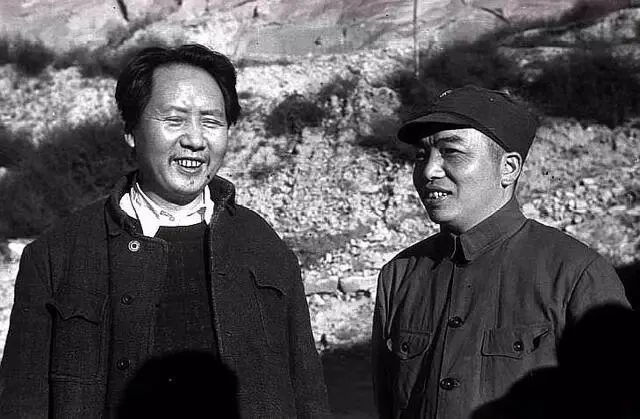 图:毛泽东和彭德怀。这是两人在接待美军延安观察组时拍摄的,两人都面露微笑。
