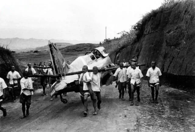 图为敌后武装击落并缴获的日本飞机。