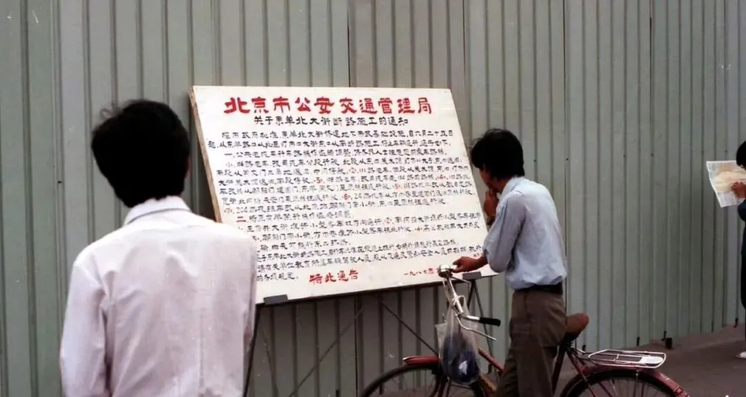 这块立在铁皮围挡前的牌子叫手写公告,黑笔红字,标题一抹重墨,落款还要钤个章,路过的爷们儿把车杵一旁,手搭凉棚凑近了看,嘴里念叨两句,这种看得懂也看得清的告示,现在被屏幕替代了,信息更快了,可这股子当面吆喝的认真劲儿,不多见了。