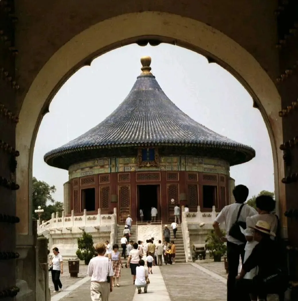 这扇门洞望出去是祈年殿,蓝琉璃瓦在阳光下泛冷光,抱鼓石边上挤着等合影的人,石阶中央镶着一块云龙御路,踩上去总忍不住放轻了脚步,外地来的叔叔拿着黑相机,背带勒在肩窝里,喊孩子别乱跑,等云过去光一匀,咔嚓一下就定格了。