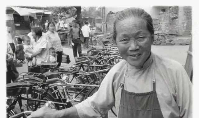 图里的铁链和腰间的小票夹,就是弄堂口看车大妈的家伙什,铁链穿过一排后轮,哗啦一声锁上,给你撕一张小条子压车号,爷爷说那时候骑车是宝,丢不得也摔不得,一毛钱的保管费交得心甘情愿。