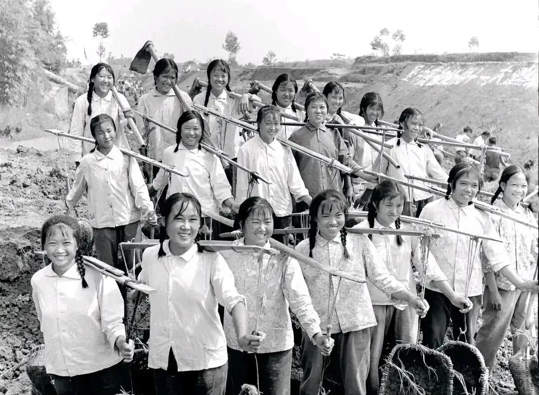 这队伍一字排开,全肩上扛的叫扁担,前头吊着撮箕和土筐,竹扁担细腰厚肩,压在锁骨上有个小窝,时间一久就成了老茧,走大堤修水渠,号子喊起来一快一慢,前后脚跟着拍,土筐上来回抡,汗顺着辫子梢滴,土星子糊脸,笑纹子更深了,队长一挥手,呼啦全队上坡下沟,那是真把力气当勋章,现在工地上一台挖机一晚能干过去他们半月,效率快了,热闹却淡了点。