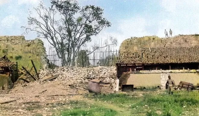 最后这处残景不多说,灰墙碎瓦,青草从缝里冒头,几个兵影被阳光切成几块,走路带着影子抖,旧城的底色就是这种灰里透青的质感,照片给它添了一层薄薄的颜色,像给记忆抹了点胭脂,既不真也不假,恰好够我们回望一眼。