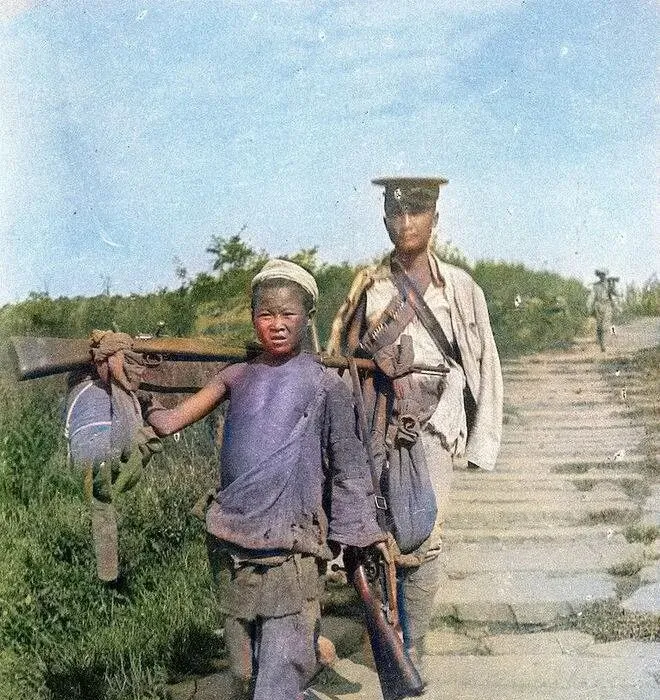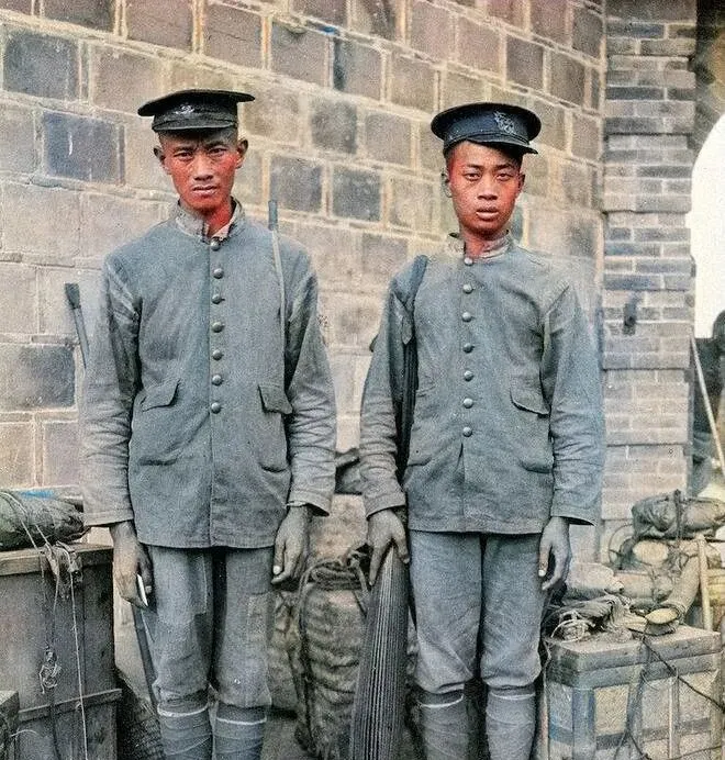 这组老照片一摆出来啊,我第一反应是眼睛被颜色勾住了,明明是旧时光的事儿,却被人耐心上色之后活了过来,既新鲜又有点刺眼,那会儿新军服刚推行,样式学的洋法子,讲究合体剪裁和整齐扣襟,可镜头里的人呢,汗渍泥点一样不少,新规矩和老习气碰在一起,味道就出来了。