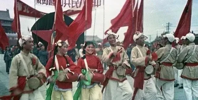 那天到底有多震撼啊,别急着翻资料,看这些彩色老照片就够了,鼓点声像是从画面里敲出来一样,红旗一面接一面,笑容一朵连着一朵,隔着岁月都能感到心跳在跟着广场的节奏跑呢。