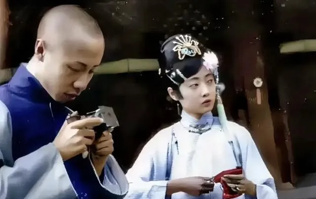 这个袖珍盒子是早期的照相机或玩具机芯,小主捏着线头研究半天,头上钿花簪子亮闪闪,旁边小哥剃着清爽的脑袋,正琢磨怎么“咔嚓”一下,老照片里能见到传统与新鲜凑一桌,就是这个味儿。