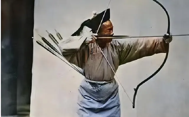 这个硬弓叫角弓,弯劲十足,背上箭壶斜挂,拉弓的那只手虎口起茧,开弓不回头,脸颊贴着弦,箭簇对着虚空,爷爷说,拉到位,劲在背不在臂,话糙理不糙。